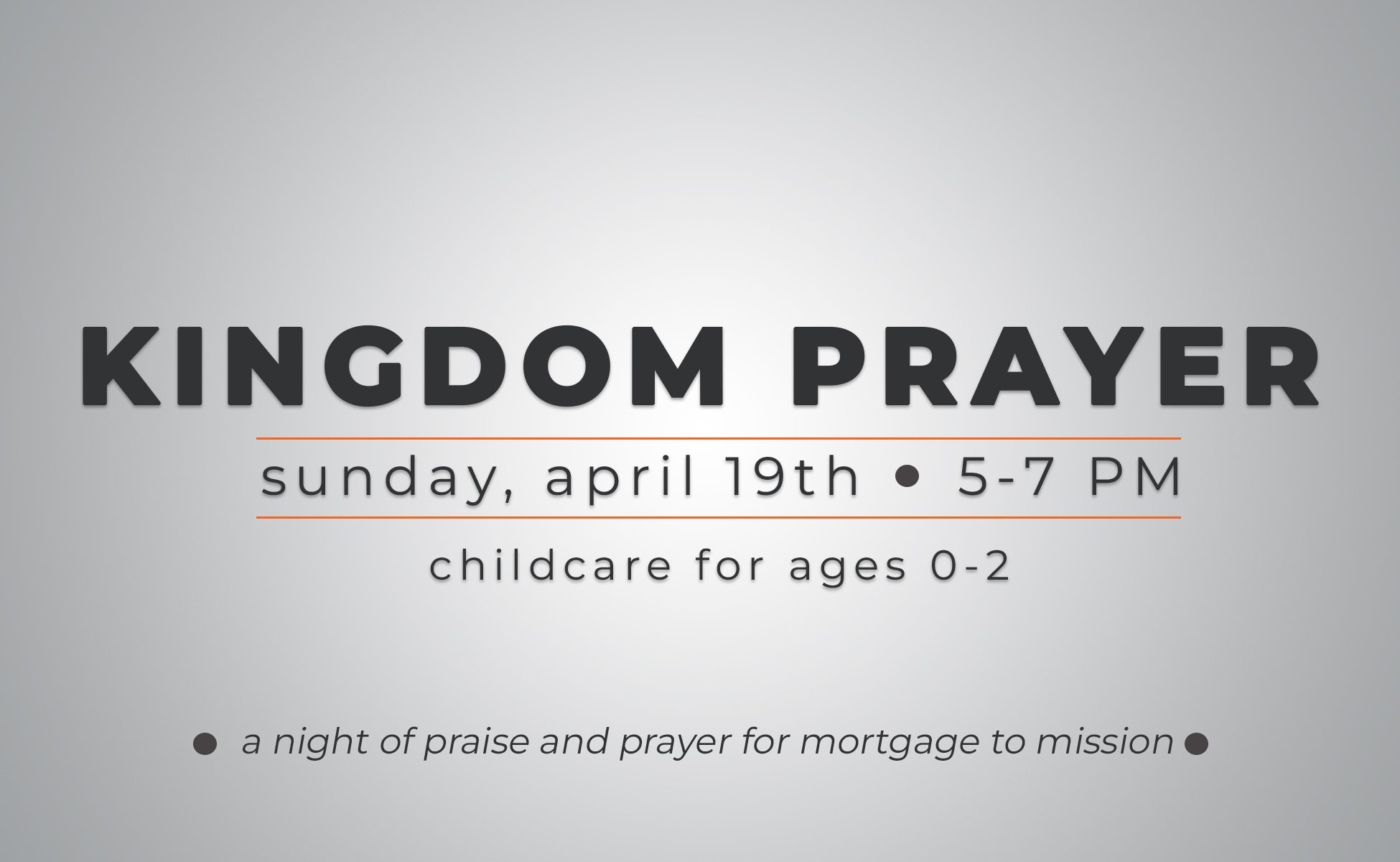 We invite you to join us for a Kingdom Prayer Night on Sunday, January 19, from 5-7PM. We are devoting our Kingdom Prayer Night scheduled for Sunday, April 19 to be a time of praise and prayer for Mortgage to Mission. As we reach the halfway point of our generosity initiative, we want to stop and celebrate what the Lord is doing in our midst. We also want to continue to pray together over the initiative. A BBQ dinner will be provided at 5PM prior to the prayer gathering. Nursery care for children ages 0–2 will be available during the prayer time. Please click here to register.
